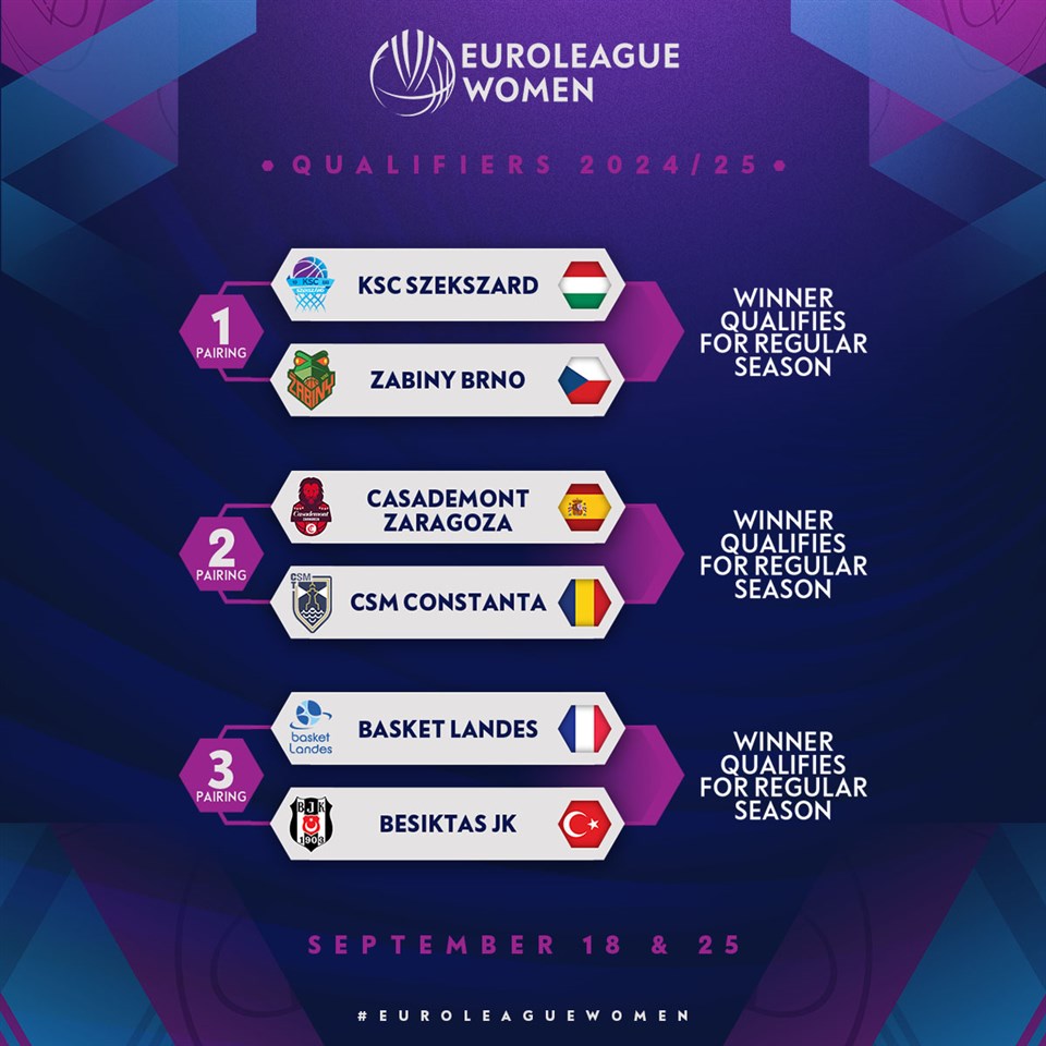Le tirage au sort de l'Eurocup Women a également eu lieu pour les cinq clubs français représentés. L'ASVEL Féminin a été placée dans le groupe A avec Gorzow (Pologne), Lehvartice Chomutov (République Tchèque) et Limassol (Chypre), tandis que le BLMA se retrouve dans le groupe D avec Fribourg (Suisse), Caledonia Gladiators (Royaume-Uni) et Neptunas Amberton (Lituanie). De son côté, Charnay a hérité du groupe E avec Sopron (Hongrie), Piestanske Cajky (République Tchèque) et un vainqueur de barrage. Enfin, Tarbes se retrouve dans le groupe G avec Movistar Estudiantes (Espagne), et deux clubs issus de barrages. Pour terminer, Angers connaît l'adversaire de son barrage avant d'intégrer le 1er tour de l'Eurocup : il s'agit de TFSE Budapest (rencontres les 19 et 26 septembre).